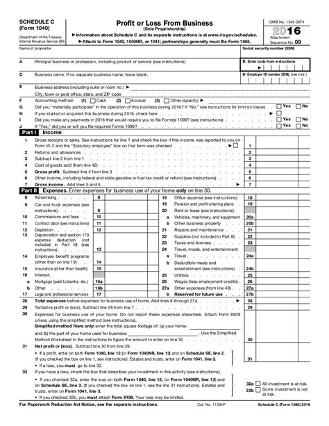 Instructions For Schedule C 1040 2016 printable pdf download