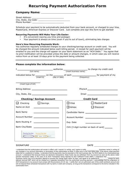 Automatic Credit Card Payment Authorization Form Template Addictionary