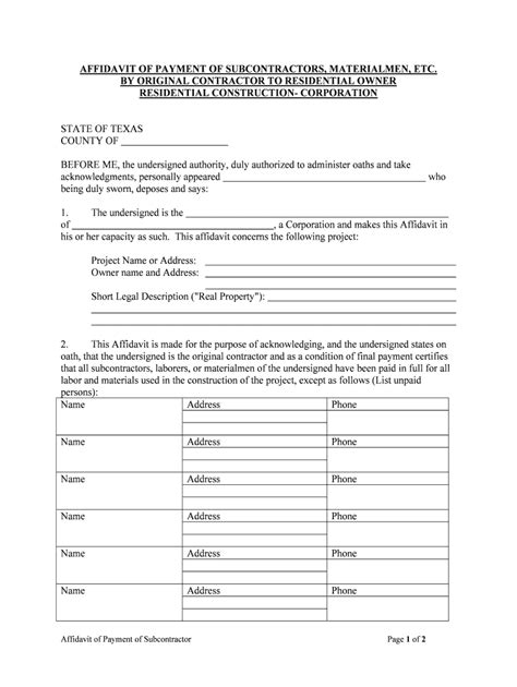 Web a contractor's affidavit is also referred to as the contractor's final payment affidavit. It's a form, signed in front of a notary, that a contractor who has worked on a construction. So in the event that a contractor has provided all services are agreed upon in the contract, but has received lack of payment or has not even been paid at all, then that. State of illinois county of } ss } contractor's affidavit Get form now download pdf. Web contractor affidavit under o.c.g.a. This form is used when the contractor is required to provide an unconditional waiver and release upon final payment in nevada. Web if waiver is for a corporation, corporate name should be used, the title of officer signing waiver should be set forth; Web contractor affidavit forms are what contractors use in the event that they would file a suit against a client or place in a lien on any construction that he or she has made. Web a contractor’s affidavit, also called a contractor’s final payment affidavit, is a form that lists vendors or subcontractors who are still owed money on a project.