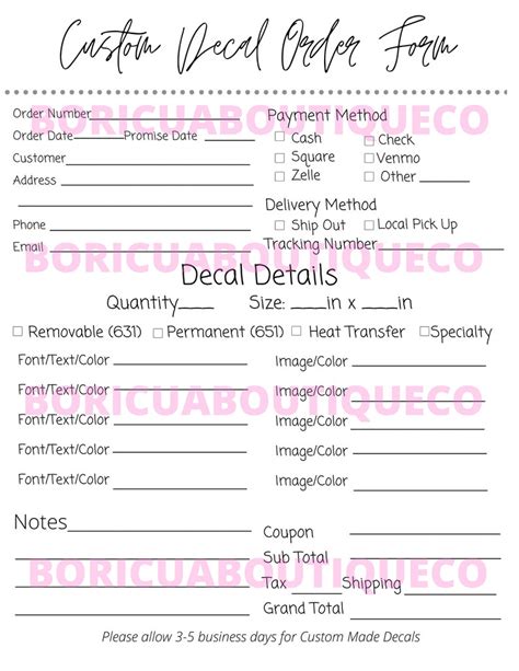 Decals for the following year will be available beginning december 1. Web car decal order form, order tracker, editable text pdf / canva template, printable car decal order form, order form, instant download. Choose the web sample in the catalogue. Decals are not refundable or exchangeable. Sign it in a few clicks draw your signature, type it, upload its image, or use your mobile device as a signature pad. Web decal order form, crafters order forms score of 5.0 based on 2 reviews share pin about decal order form, crafters order forms graphic 78x added to favorites add to favorites +44 ♥ simple & modern decal order template you will receive 1 pdf non editable file us letter (8.50 × 11.00 inches). Web here's how it works 01. Decal order form template, editable small business forms, printable etsy crafters order form, custom car decal order forms. Web check out our decals order form selection for the very best in unique or custom, handmade pieces from our templates shops. Share your form with others