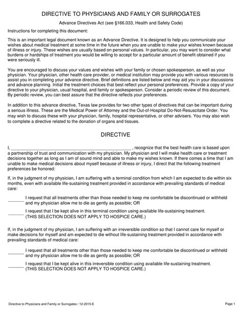 Web texas directive to physicians and family or surrogates this is an important legal document known as an advance directive. Web the texas department of health and human services has free forms and instructions for advance directives. Create your health care directive form texas in minutes. Web the texas department of health and human services has assembled several different forms to assist individuals in preparing advanced directives. It is designed to help you. Known as the texas advanced directives act, this chapter governs how and when three advanced. These are the medical power of attorney. Web i understand that under texas law this directive has no effect if i have been diagnosed as pregnant. All other health conditions may be noted by the customer on the reverse. Web in addition to this advance directive, texas law provides for two other types of directives that can be important during a serious illness. Ad simple instructions to create your health care directive form texas by yourself in minutes.