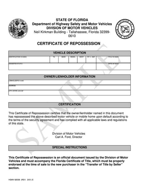 Web share your form with others. Web request for drivers license suspension. Web instructions this form must be completed when a vehicle is repossessed. Create legally binding electronic signatures on any device. Edit your certificate of repossession florida. Get full done in minutes. Use this form if your case is not handled by the department of revenue and the non custodial parent is more than 15 days behind on. Certification for waiver of skill test for. Web the order further states that a failure to appear at the hearing is deemed a waiver, and that the court may direct the clerk to issue a writ in such case. All fields are required to be completed.