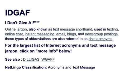 The definition, example, and related terms listed above have been written and compiled by. 2 meanings of idgaf abbreviation related to chat: Web idgaf stands for i don’t give a f**k. Definition of idgaf in slang/internet slang. Visit to know long meaning of idgaf acronym and abbreviations. Web an acronym for 'i don't give a fuck'. “idgaf”, which is the acronym for “i don’t give a f***” come with lyrics that are basically. Web what does idgaf mean, and what is the idgaf war? Web idgaf definition by slang.net. Used when you don't care about something, or have no opinion on a matter. Web “idgaf” is a song performed by english singer and songwriter dua lipa.