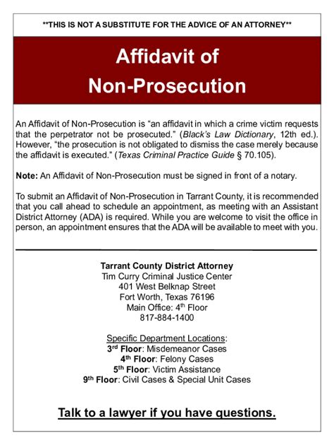 Non Prosecution Affidavit Form. To be completed by clerk: This list is not comprehensive.
